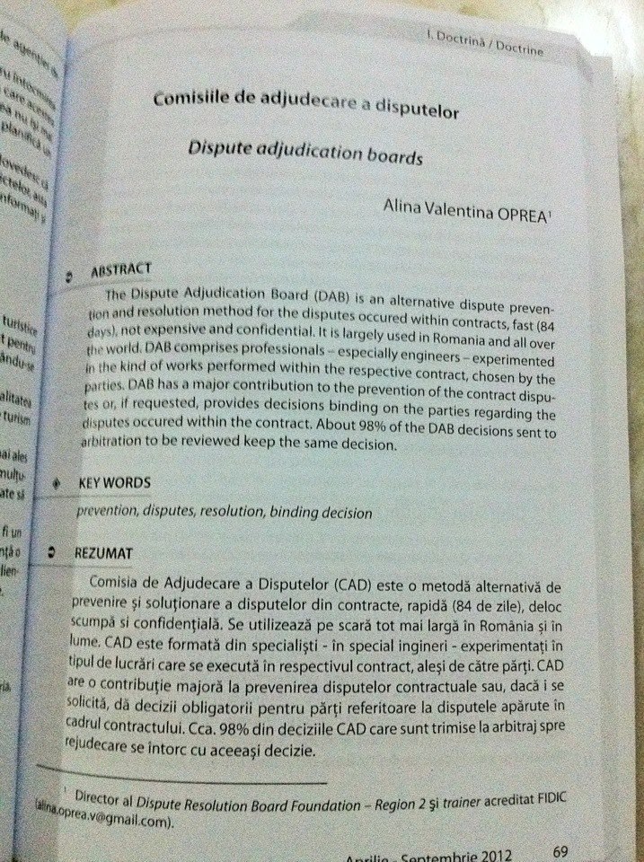 Prezentarea Comisiilor de Dispute ia amploare in Romania (in engleza, in „DRBF Forum Newsletter”)